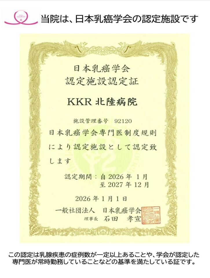 KKR 北陸病院 女性チームによる乳腺外来を行っています