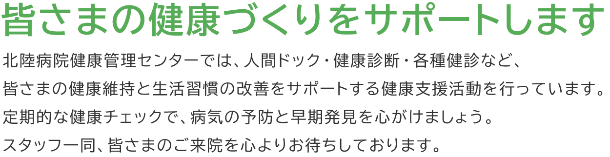 人間ドック・健診をご検討の際は、どうぞお気軽に当センターへご相談ください。